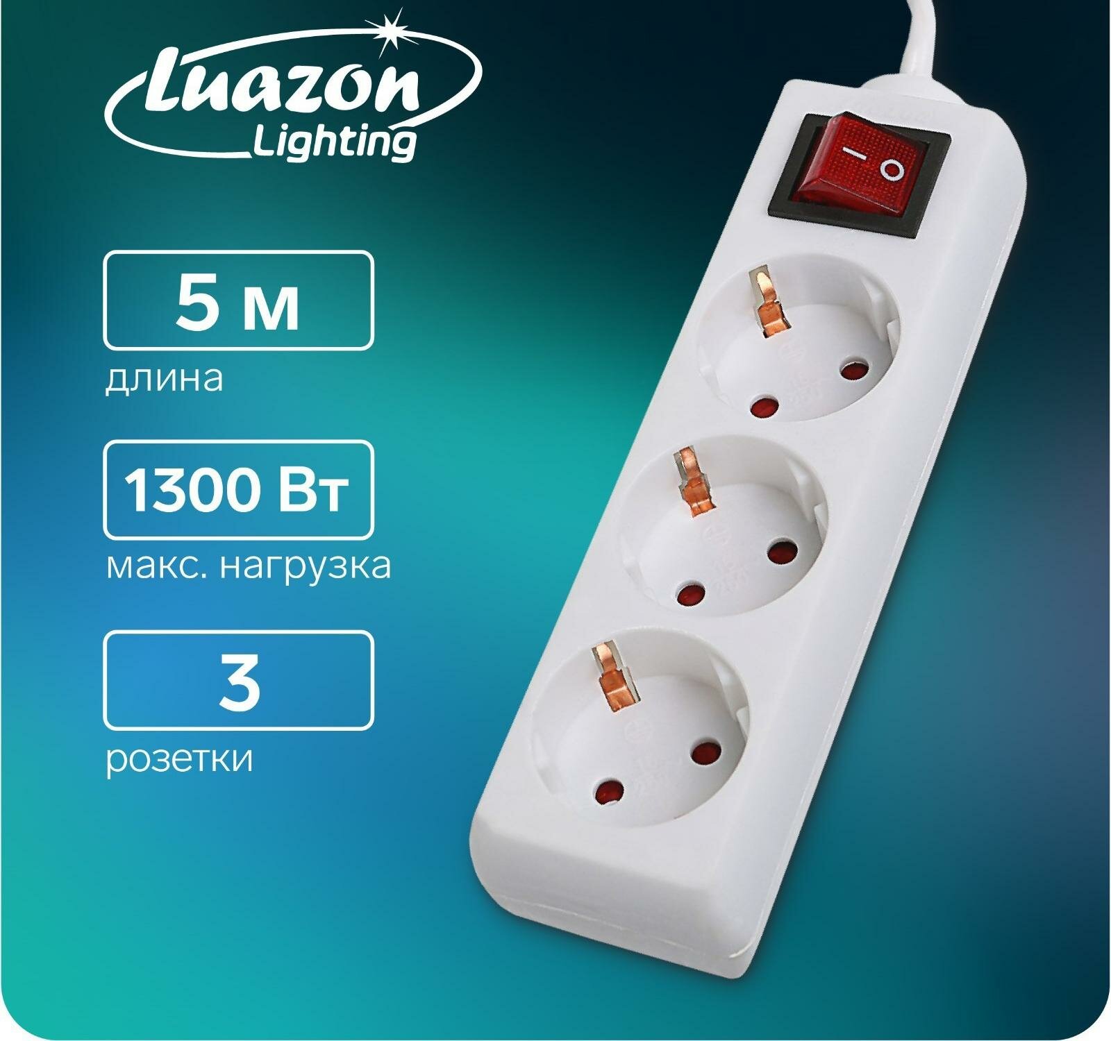 Luazon Lighting Удлинитель Luazon Lighting, 3 розетки, 5 м, 6 А, 1300 Вт, 3х0.75 мм2, с з/к, с выкл., Б