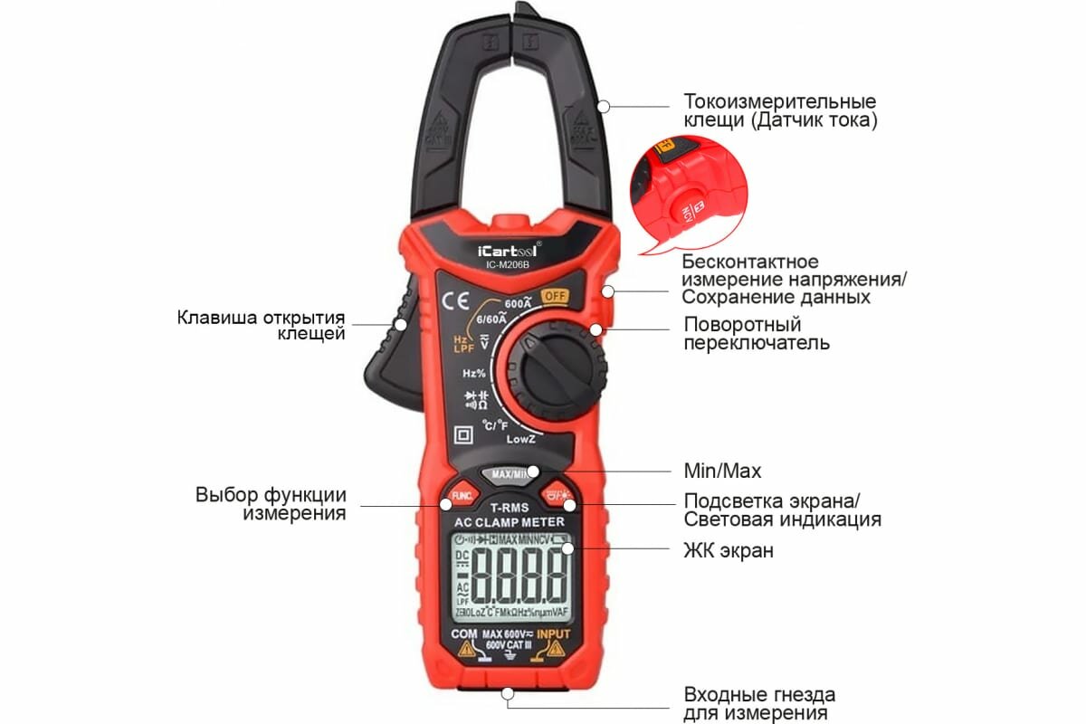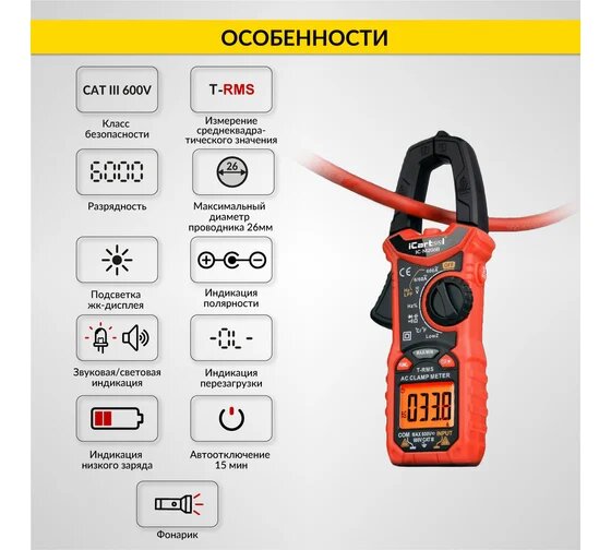 Токовые клещи переменного тока 600A iCartool IC-M206B интересное: