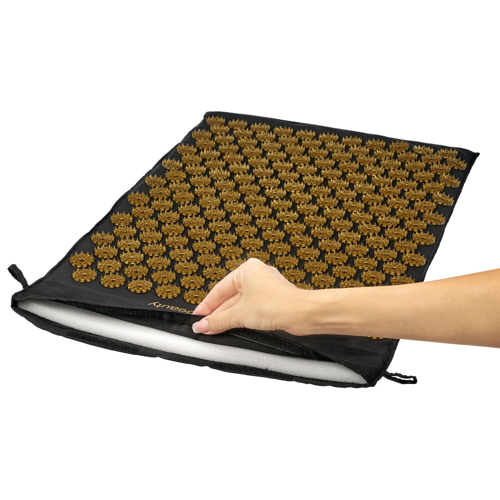 Купить Массажный коврик для спины с иголками Нирвана, аппликатор кузнецова игольчатый, 60х40 см, черный, матовое золото
