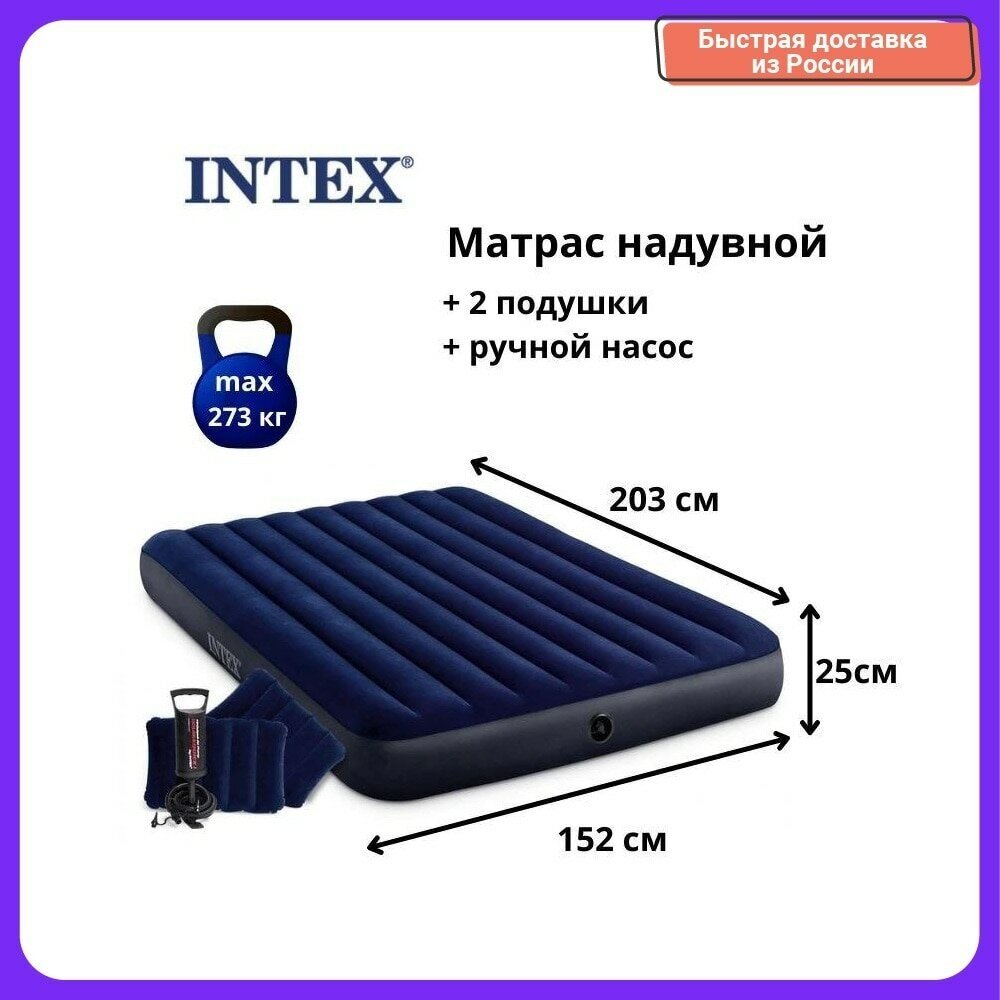 Матрас надувной 152x203x25см, Classic Downy Airbed, Intex 64759 интересное: