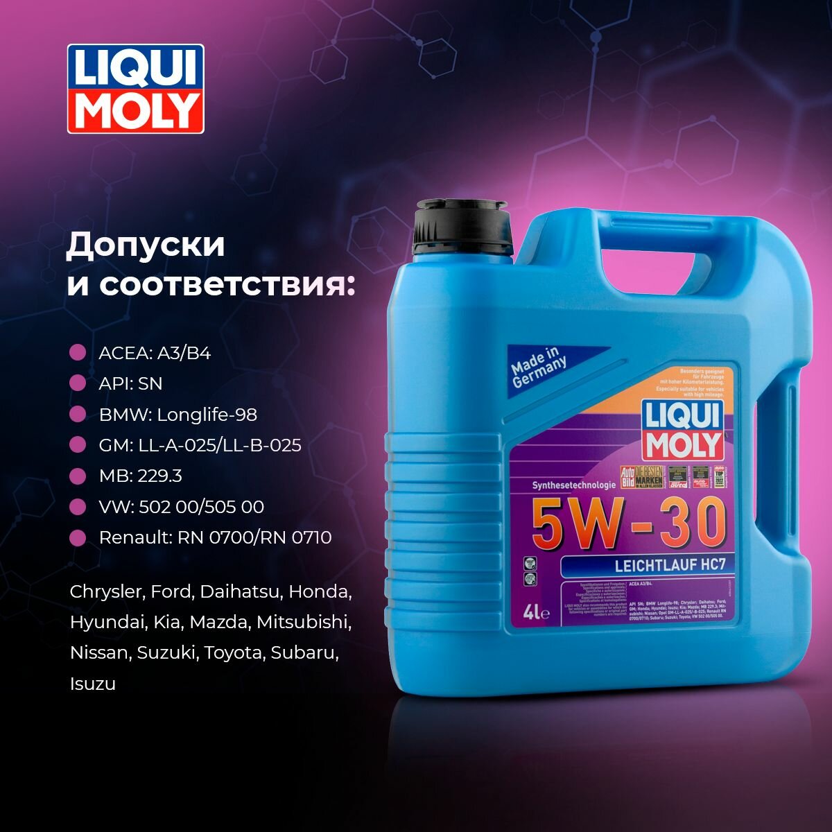 Ниже Вы можете прочитать отзывы на LIQUI MOLY Нс-Синт. Мот.масло Leichtlauf Hc 7 5W-30 A3/B4 (4Л), ознакомится с подробными характеристиками, посмотреть интересные обзоры и фотографии на LIQUI MOLY Нс-Синт. Мот.масло Leichtlauf Hc 7 5W-30 A3/B4 (4Л).