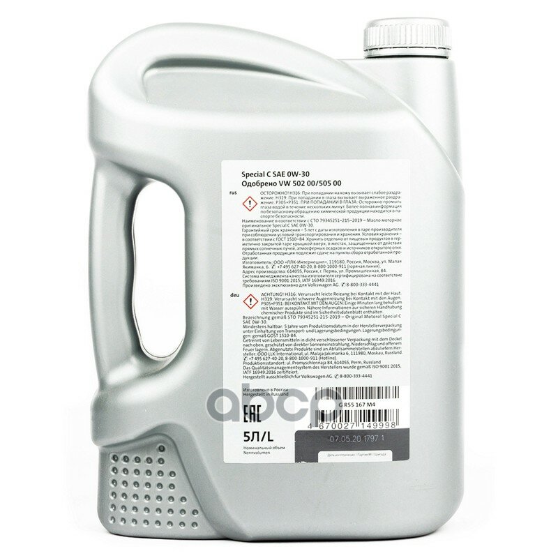 Моторное масло VAG SPECIAL С 0W-30 GR55167M4/ G055167M4 5 л Volkswagen, Skoda, Audi Синтетическое