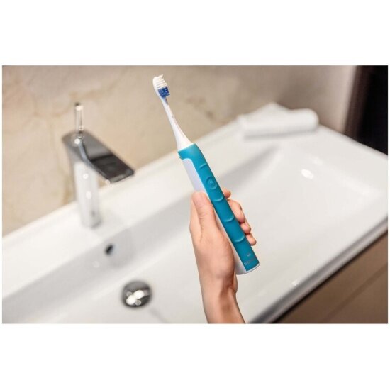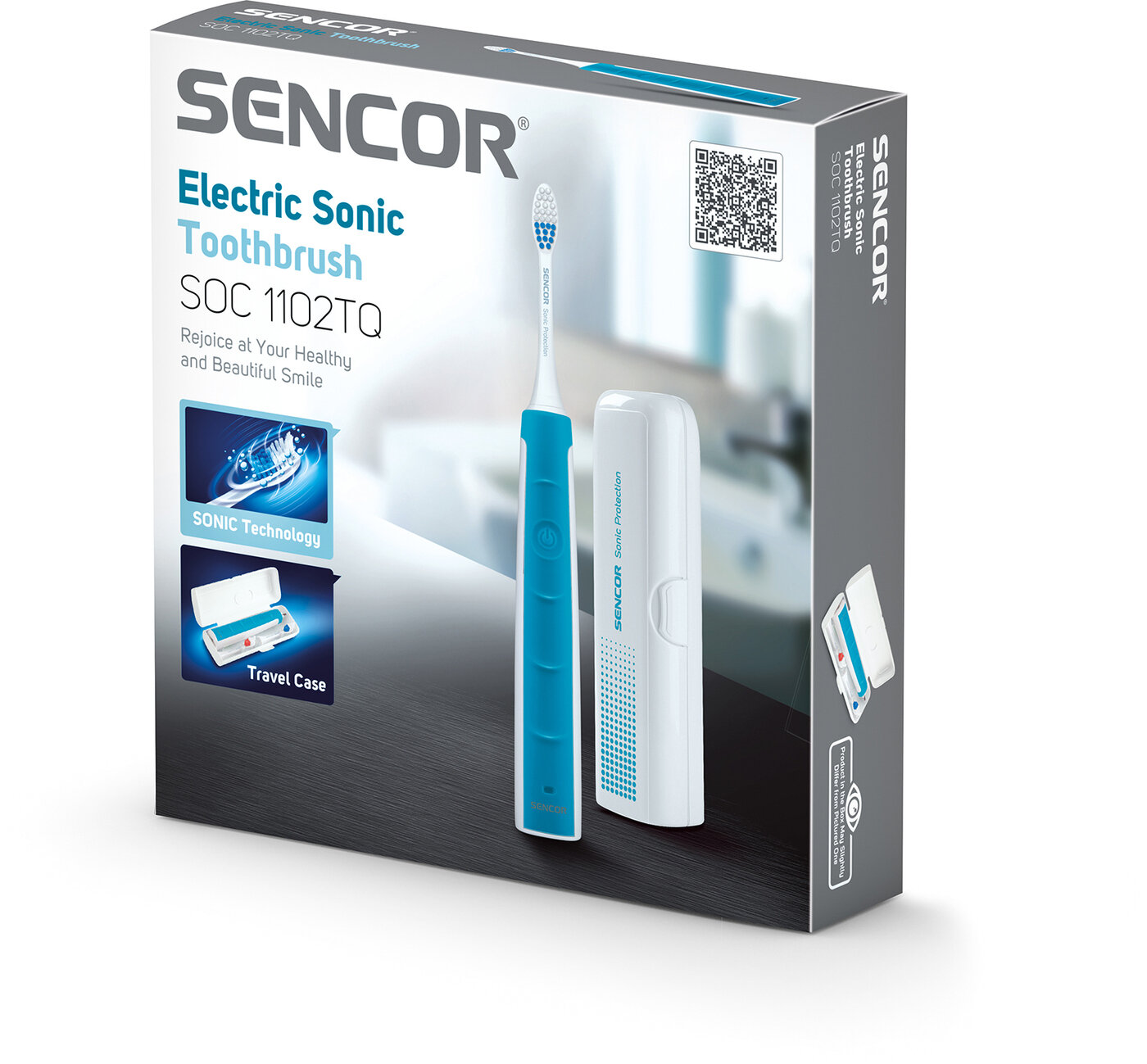 Электрическая зубная щетка SENCOR SOC 1102TQ белый, голубой [режимов-1, насадок-2 шт, подставка, пит