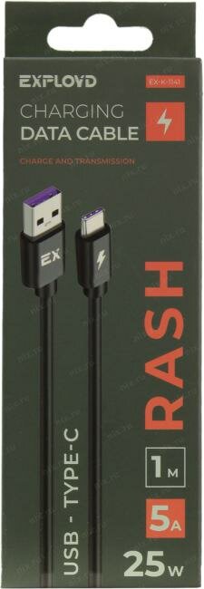 Кабель USB 2.0 x TypeC -1 метр. Exployd EX-K-1141 (5A) (черный) интересное: