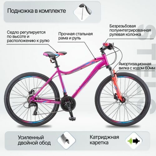 STELS LU089370 Велосипед 26 горный STELS Miss 5000 D (2021) количество скоростей 21 рама сталь 16 Фиолетовый/розовый