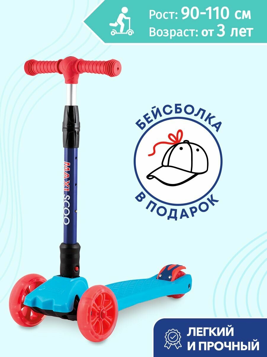 Самокат трехколесный складной Maxiscoo Junior Delux (2021) со Светящимися Колесами, Синий .