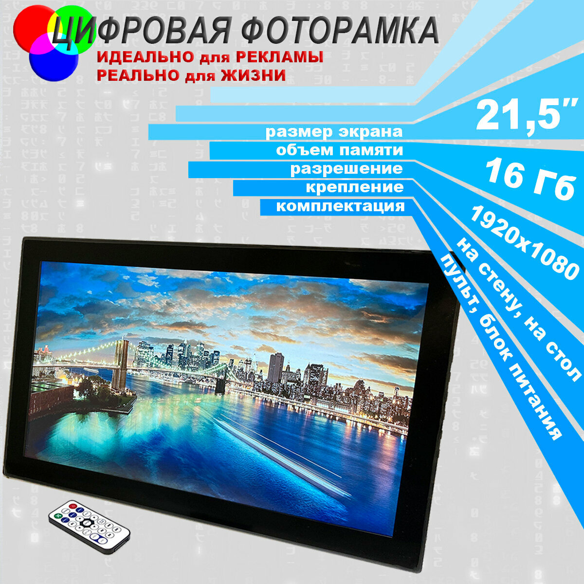 Цифровая фото рамка Espada Photo Frame 21,5" E-21A black, 16Gb интересное: