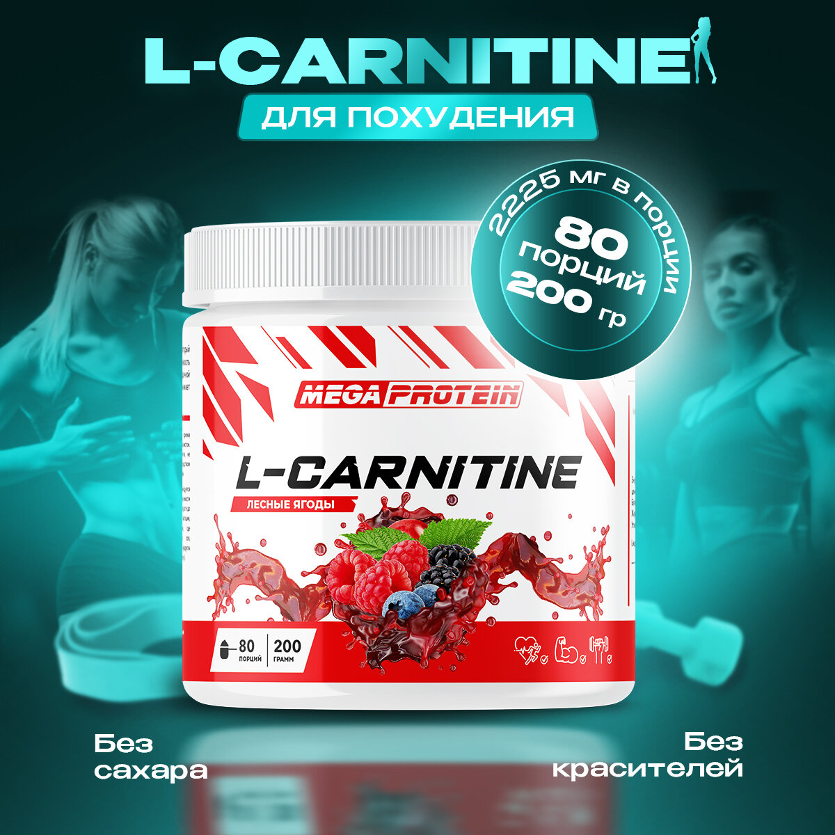 L Carnitine жиросжигатель для похудения Megaprotein / Л Карнитин порошок, Лесные ягоды / 200 гр, 80 порций