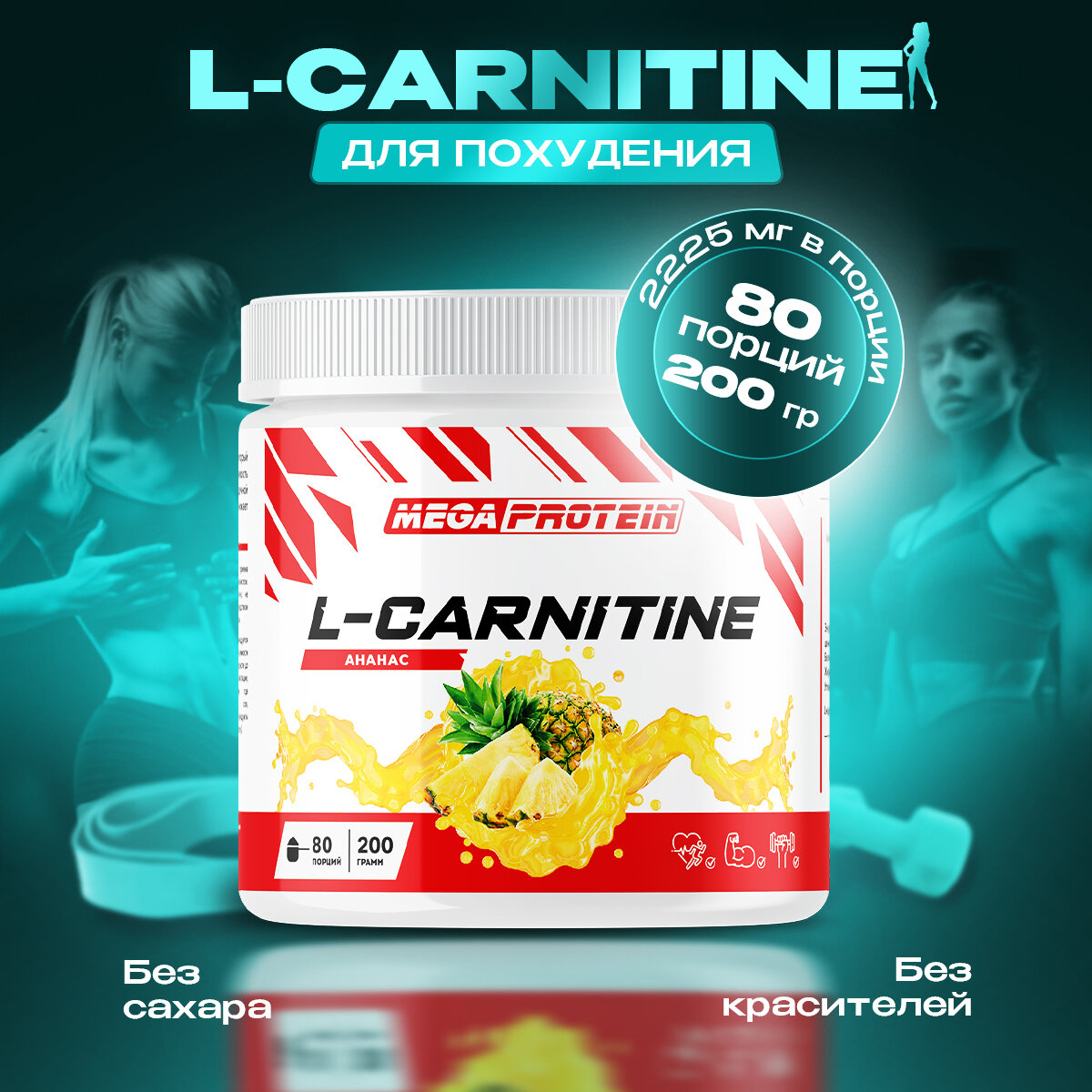 L Carnitine жиросжигатель для похудения Megaprotein / Л Карнитин порошок, Ананас / 200 гр, 80 порций