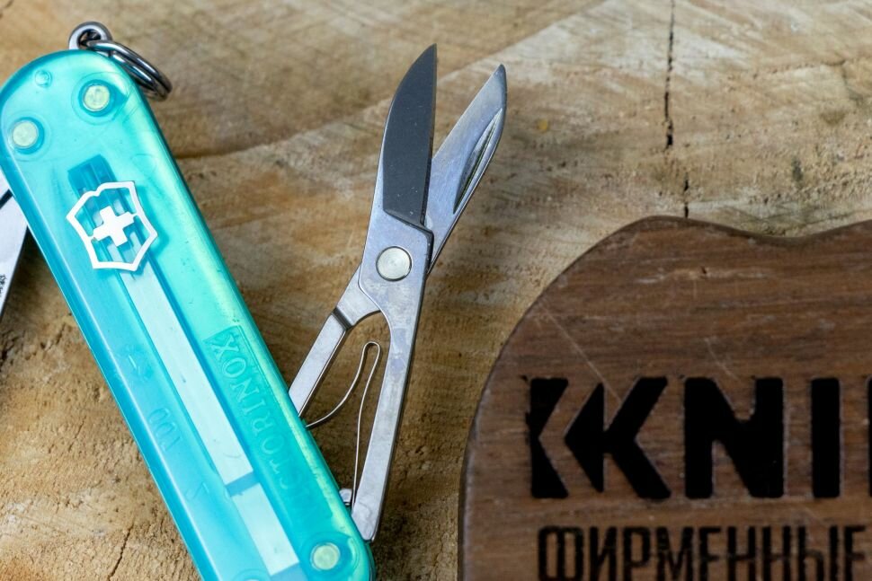 Нож-брелок Victorinox Classic SD Colors Tropical Surf, 58 мм, 7 функций, полупрозрачный бирюзовый