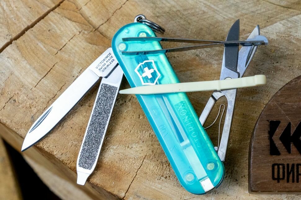 Нож-брелок Victorinox Classic SD Colors Sky High, 58 мм, 7 функций, полупрозрачный синий