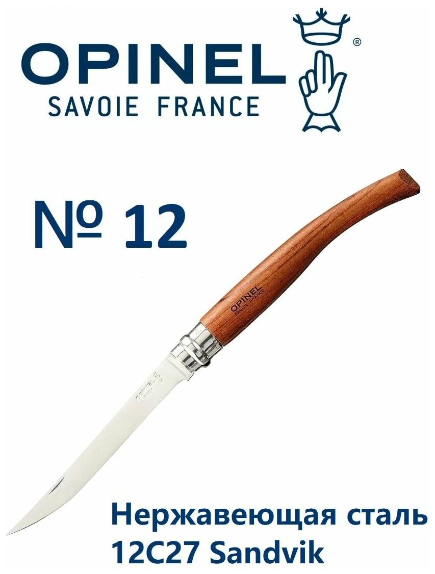 Нож филейный Opinel №12, нержавеющая сталь, рукоять бубинга