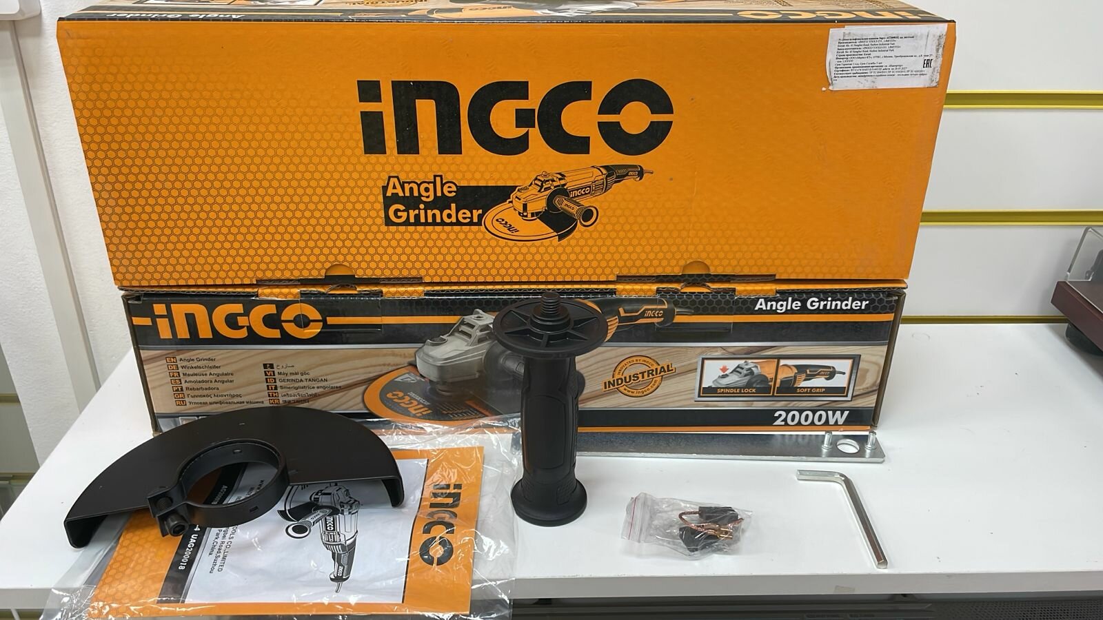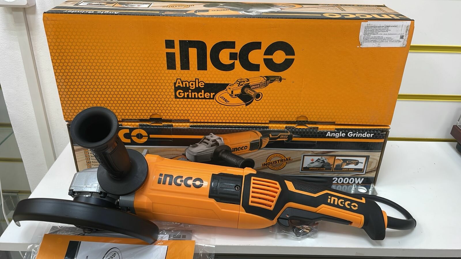 Купить Шлифовальная машина угловая 180/2000ВТ 8000 об.МИН.ВЕС 5,7КГ INGCO