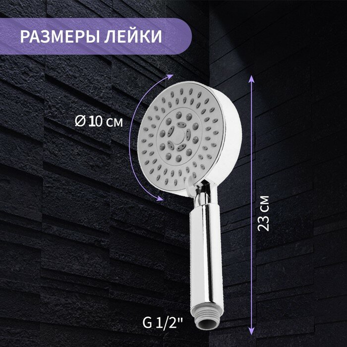 Душевая лейка ZEIN Z0501, пластик, средняя, 3 режима, хром 5482417