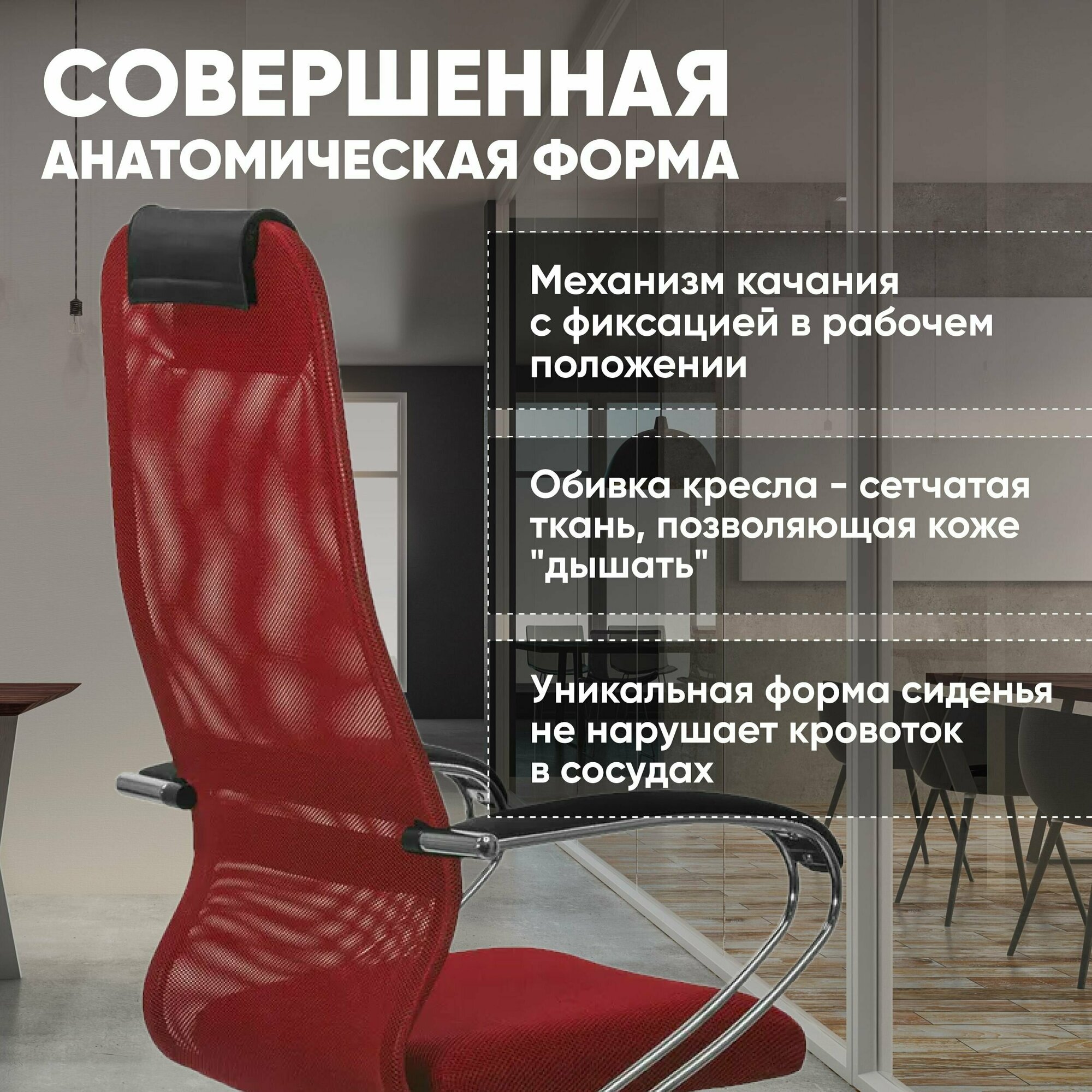 Кресло руководителя Метта SU-BK-8 CH, ткань-сетка, №22, спинка-сетка, топ-ган, красный