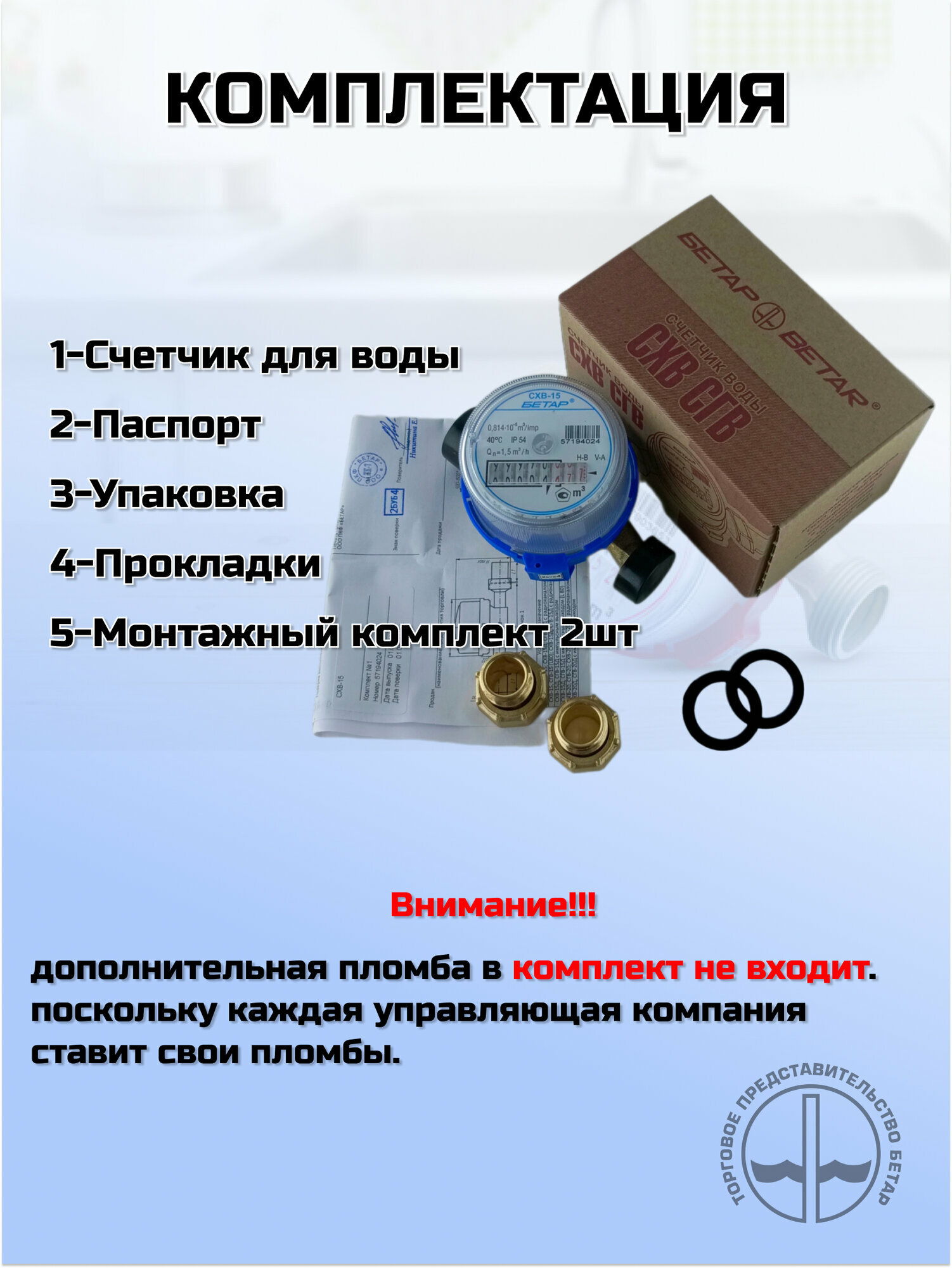 Счетчик воды Бетар СХВ15 с монтажным комплектом