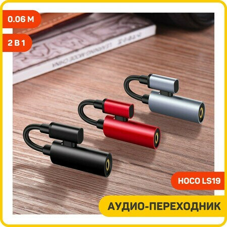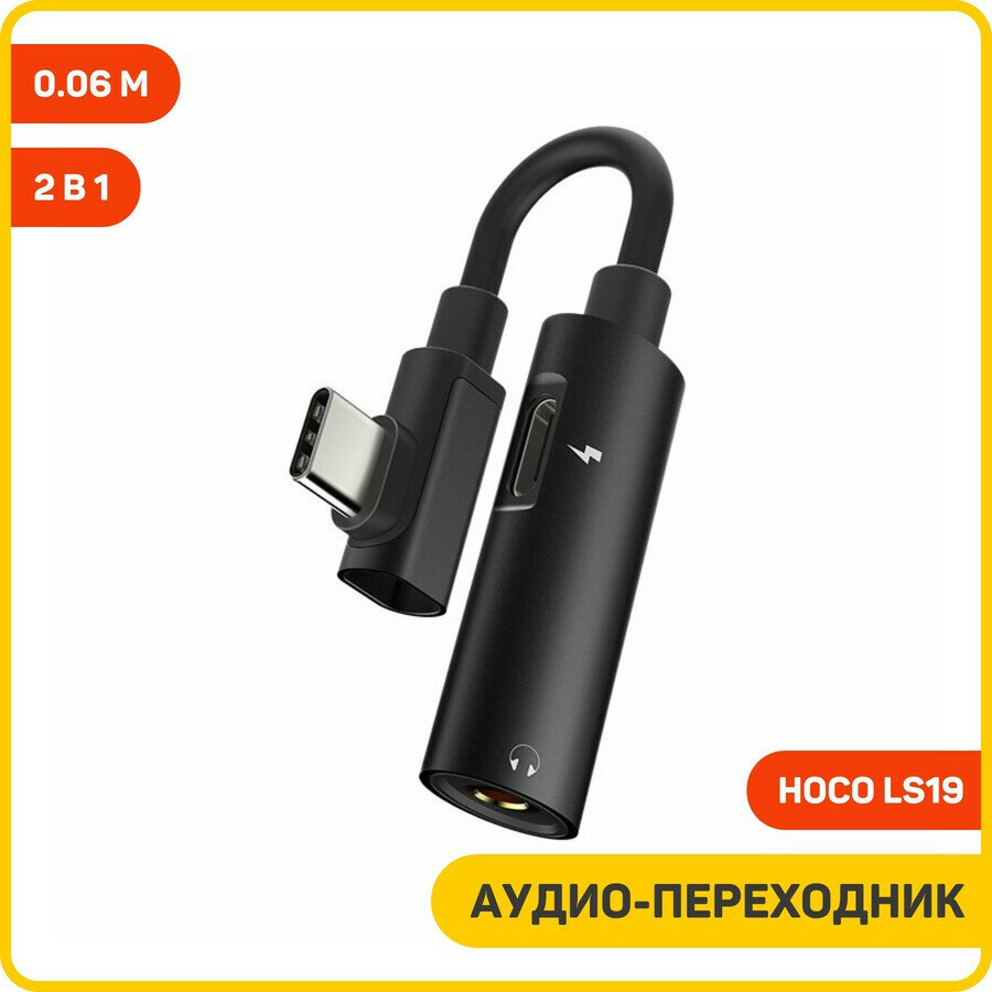 Аудио-переходник (адаптер) Hoco LS19 (2 в 1) 3.5 мм/Type-C-Type-C с поддержкой зарядки, 0.06 м, черный интересное: