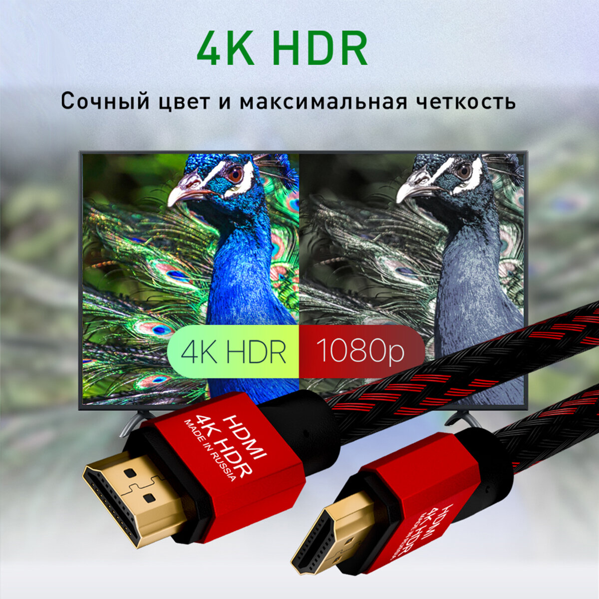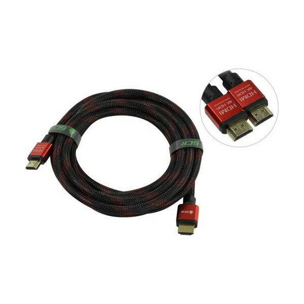 Купить HDMI Видео-кабель 3м GCR Ultra HD 4K 3D 18 Гбит/с частично нейлон для монитора черно-красный 24К GOLD