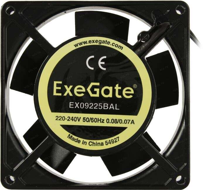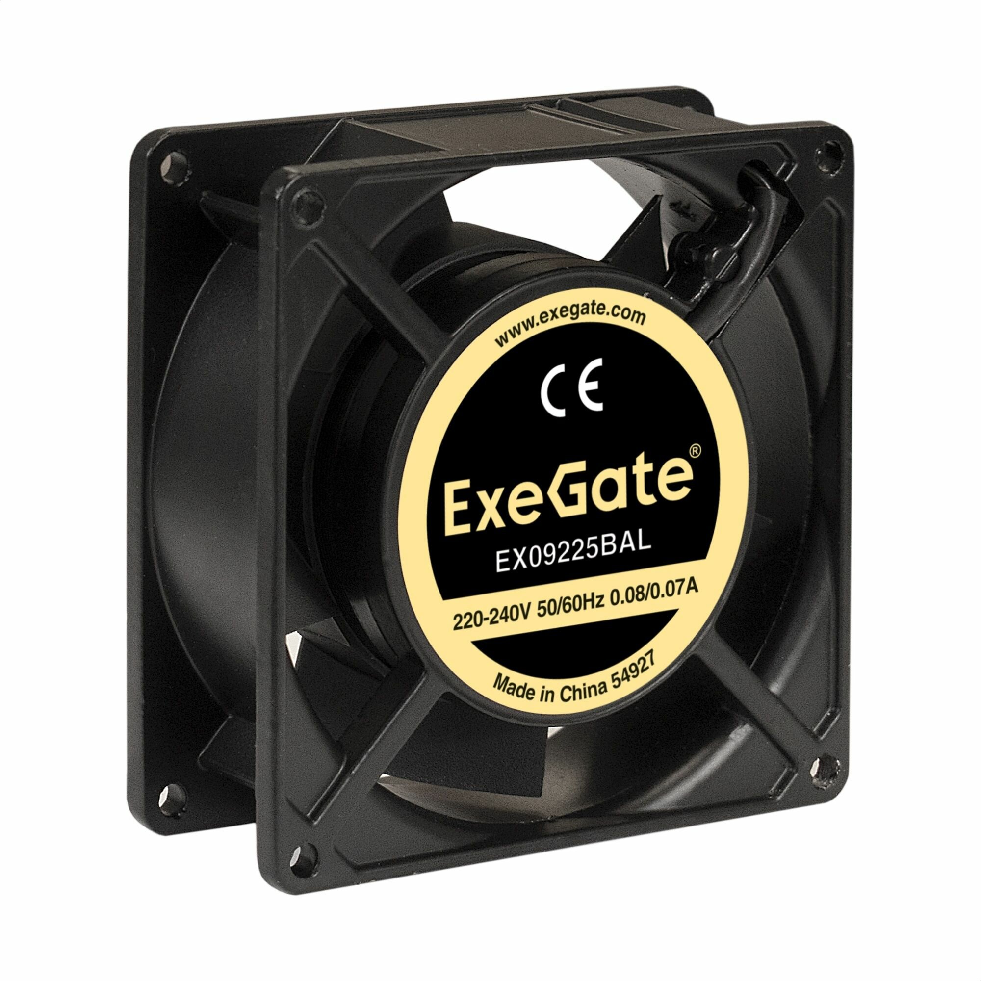Вентилятор 220В AC ExeGate EX09225BAL (92x92x25 мм, 2-Ball (двойной шарикоподшипник), алюминиевый корпус, подводящий провод 30 см, 2500RPM, 32dBA, RTL) EX289003RUS