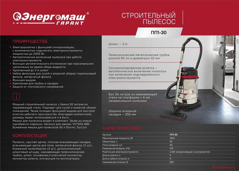 Промышленный пылесос Энергомаш ПП1-30 интересное: