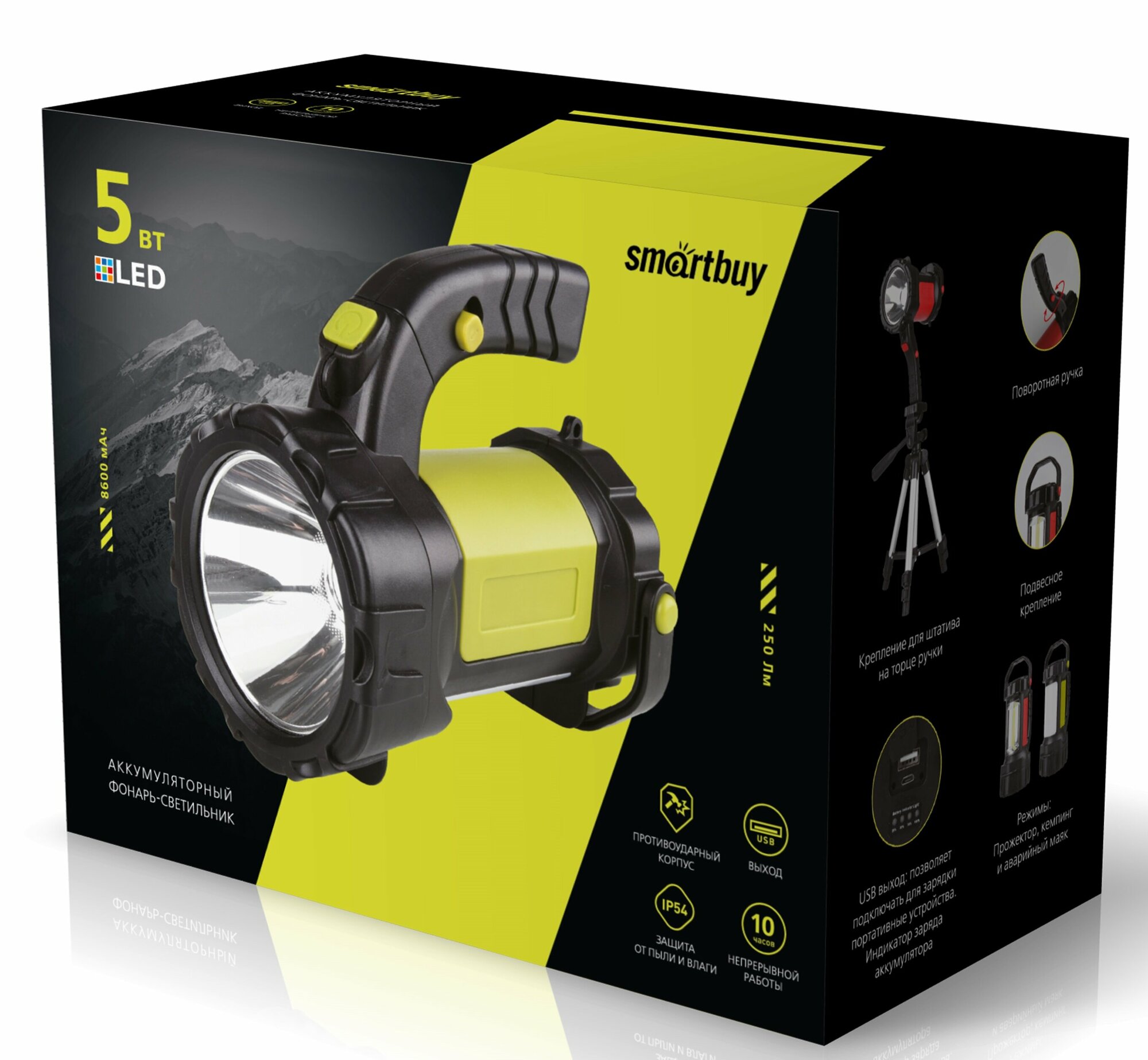 Фонарь-прожектор SmartBuy SBF-501-K, аккумуляторный, черно-желтый (SBF-501-K)
