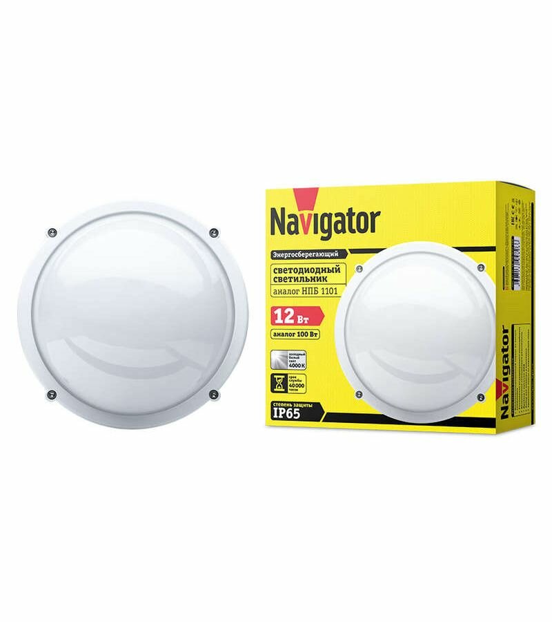 Светильник 94 826 NBL-R1-12-4K-WH-IP65-LED (аналог НПБ 1101/НПП 1101) | код. 94826 | Navigator (4шт.в упак.)