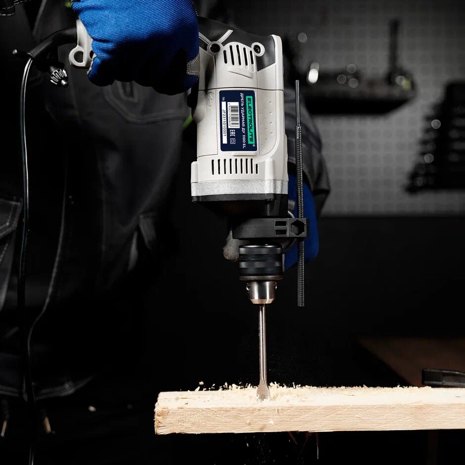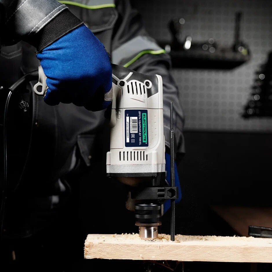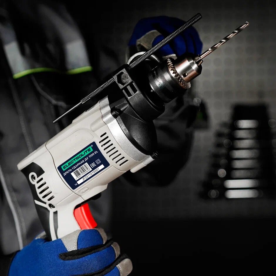 Дрель ударная электрическая / Ударная дрель / Дрель ударная сетевая ELECTROLITE ДУ 1100 EL (1100 Вт, регулировка оборотов, 52000 уд/мин) для сверления металла бетона и дерева