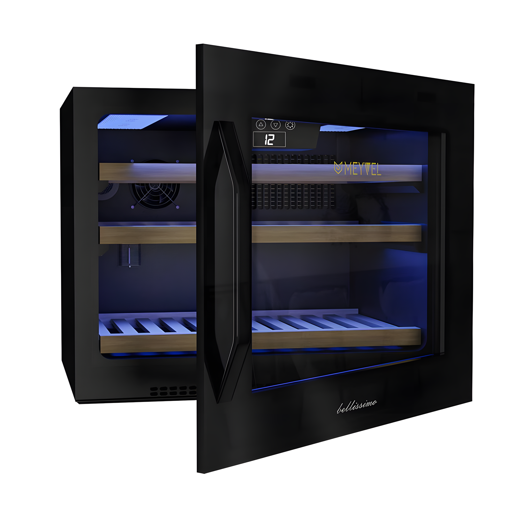 Винный шкаф MEYVEL MV22-KBB1 (встраиваемый компрессорный холодильник для вина на 22 бутылки) интересное: