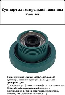 Суппорт в сборе 6203 подшипник резьба по часов. с противоп. стороны шкива Electrolux Zanussi - 4071430963 - SKL замена cod098 интересное: