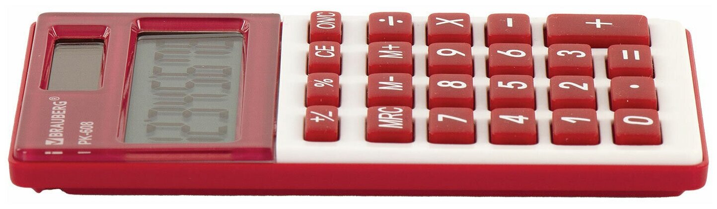 Купить Калькулятор карманный BRAUBERG PK-608-WR (107x64 мм), 8 разрядов, двойное питание, бордовый, 250521 - 1 шт.