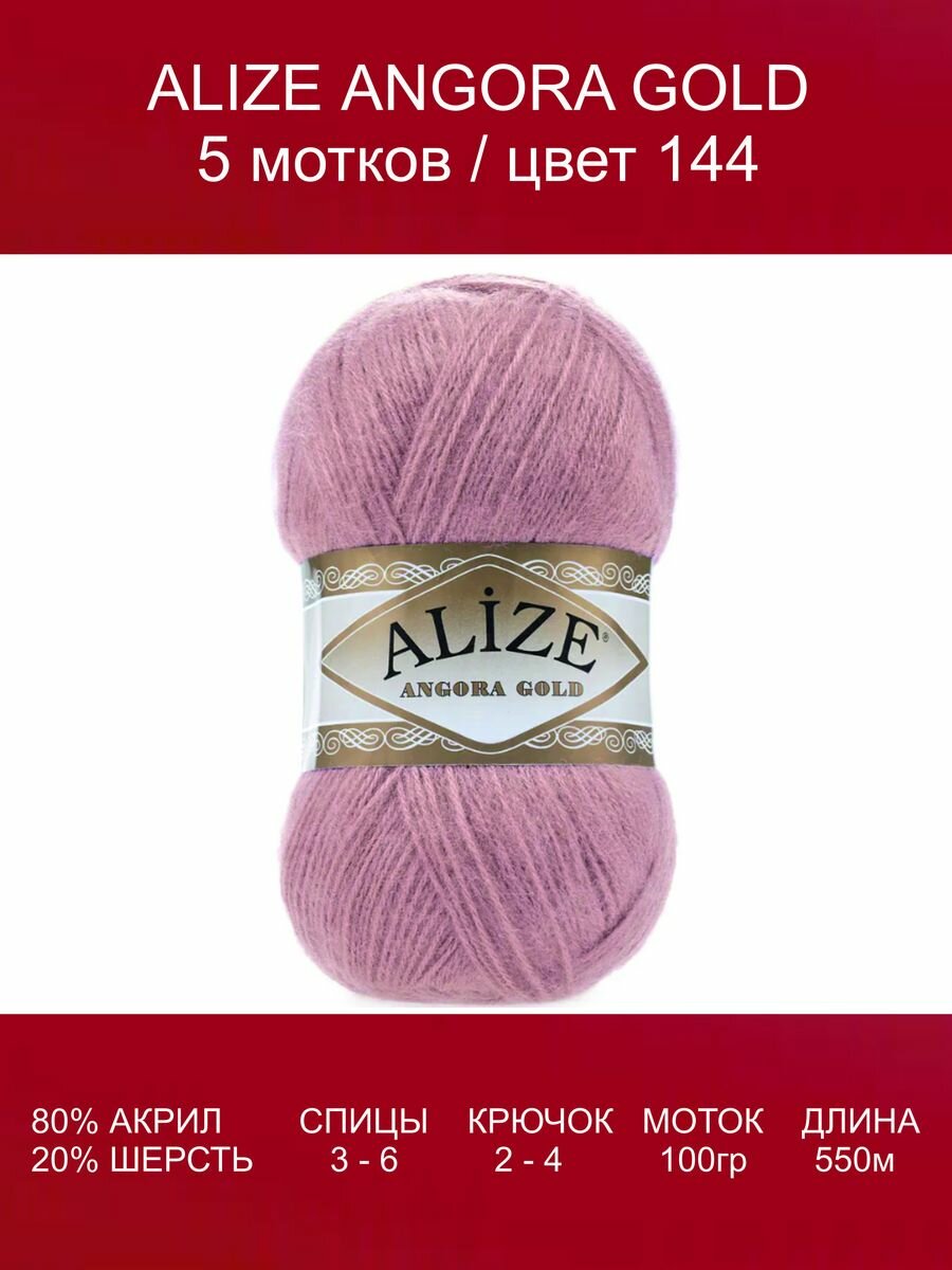 Купить Пряжа для вязания ALIZE 'Angora Gold' 100г, 550м (80% акрил, 20% шерсть) ТУ (144 старо-розовый), 5 мотков