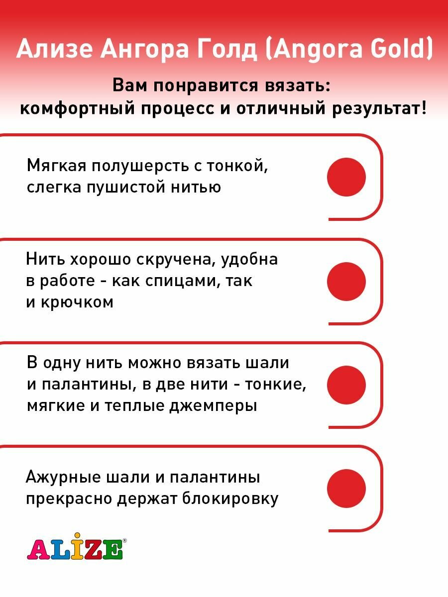 Пряжа Alize Angora Gold | Турция | 5шт упаковка | Акрил: 80%, Шерсть: 20%