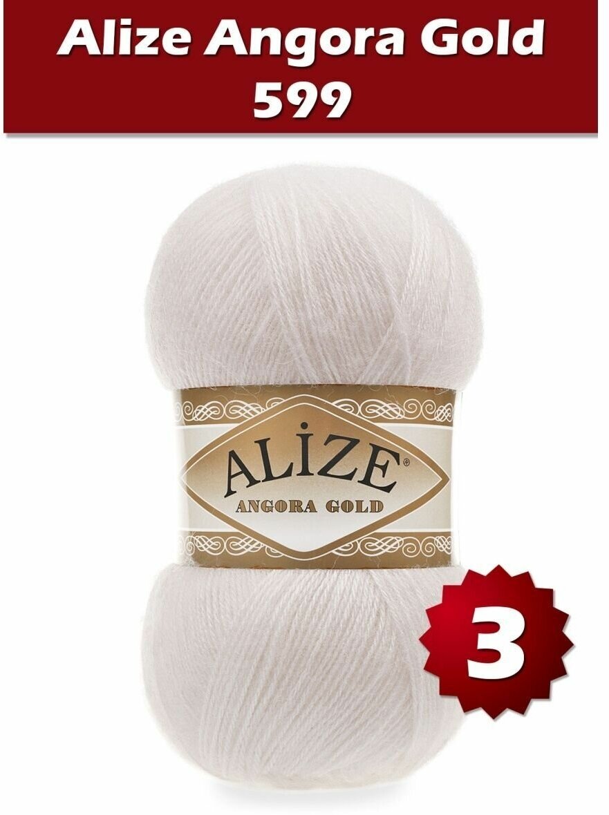 Купить Пряжа Alize Angora Gold слоновая кость (599), 80%акрил/20%шерсть, 550м, 100г, 3шт