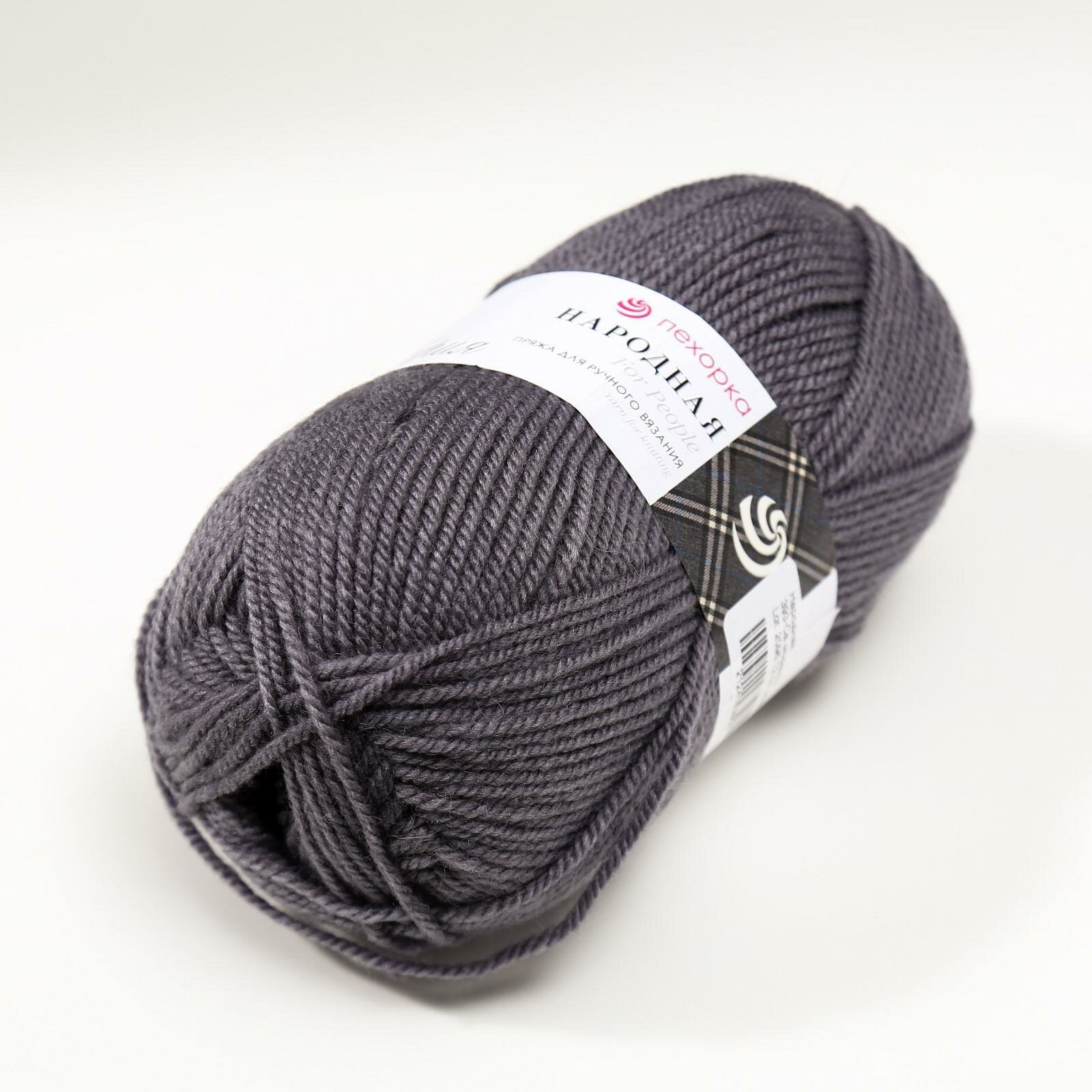 Пряжа Пехорский текстиль "Народная", 30% шерсть, 70% акрил объемный, 220 м/100 гр, (42-Слива)