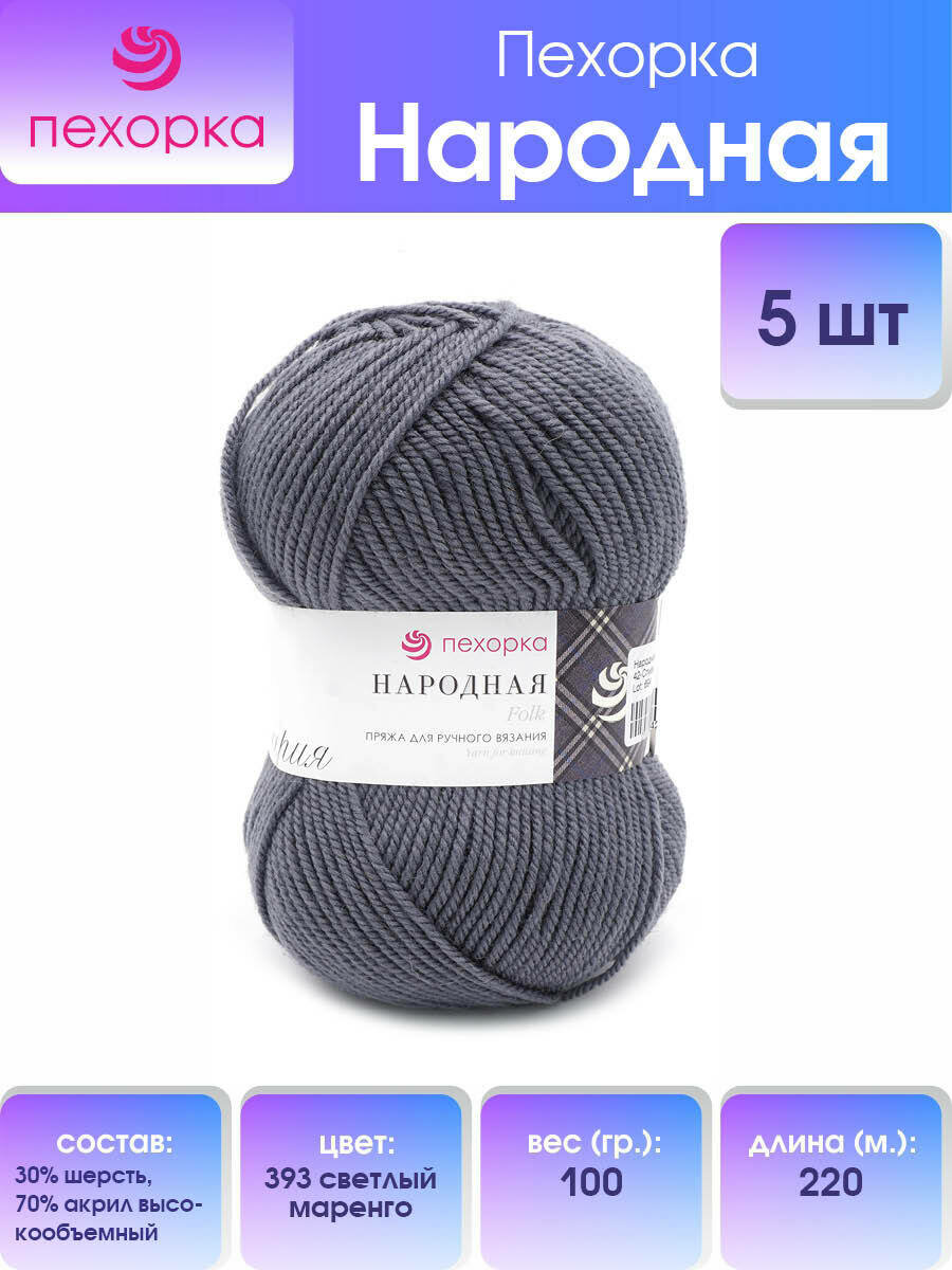Пряжа Пехорка Народная светлый маренго (393), 70%акрил/30%шерсть, 220м, 100г, 5шт