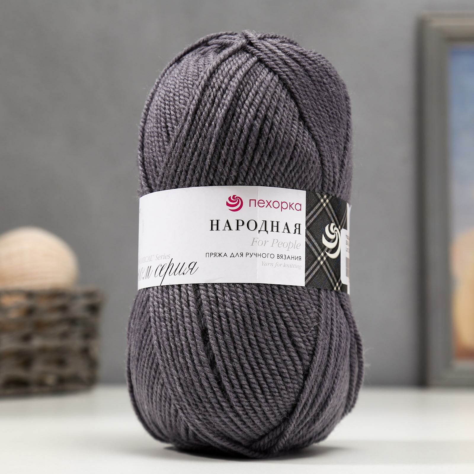 Купить Пряжа для вязания Пехорка 'Народная', 100г, 220м (30% шерсть, 70% акрил высокообъемный) (393 светлый маренго), 5 мотков
