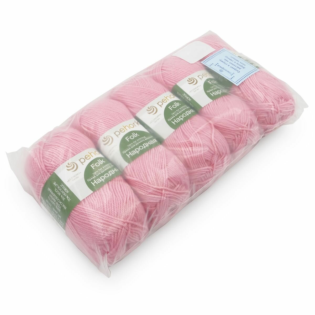 Пряжа Народная (Пехорка), Розовый - 20, 30% шерсть, 70% акрил, 5 мотков, 100 г., 220 м.