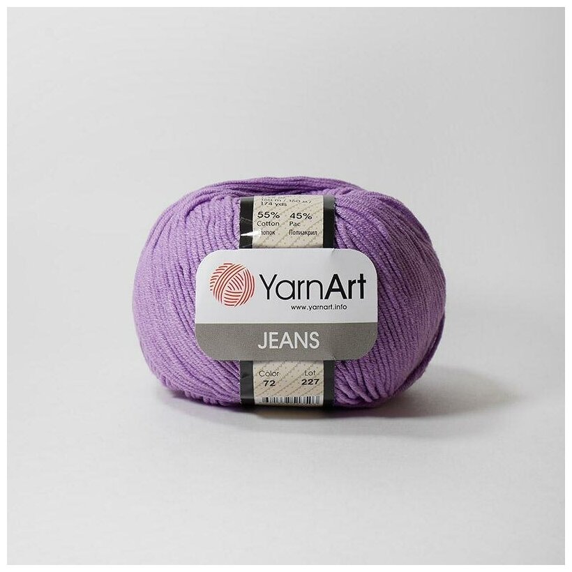 Пряжа YarnArt Jeans, 55% хлопок, 45% полиакрил, 50гр/160м 72 сиреневый