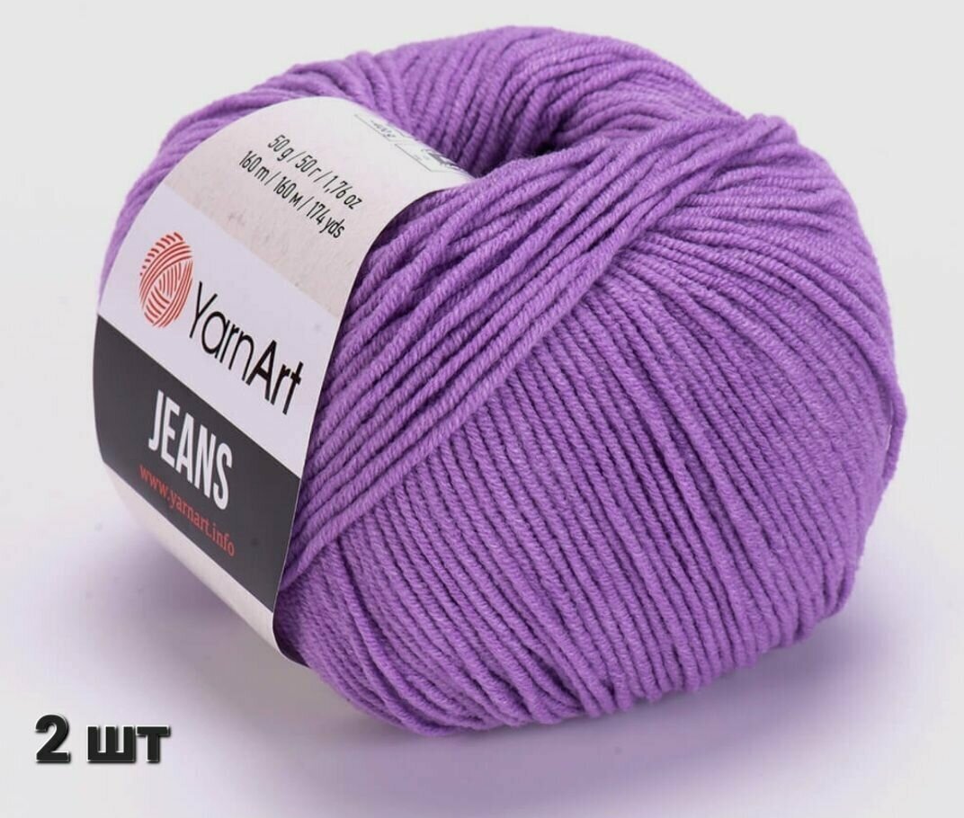 Пряжа YarnArt Jeans, цвет лиловый 89, 1 моток, 50г/160м, состав 45% акрил, 55% хлопок, ярнарт джинс