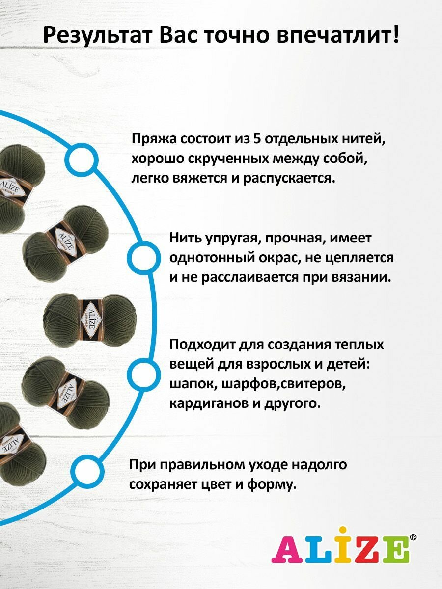 Пряжа для вязания ALIZE 'Lanagold', 100г, 240м (49% шерсть, 51% акрил) (758 оливковый), 5 мотков