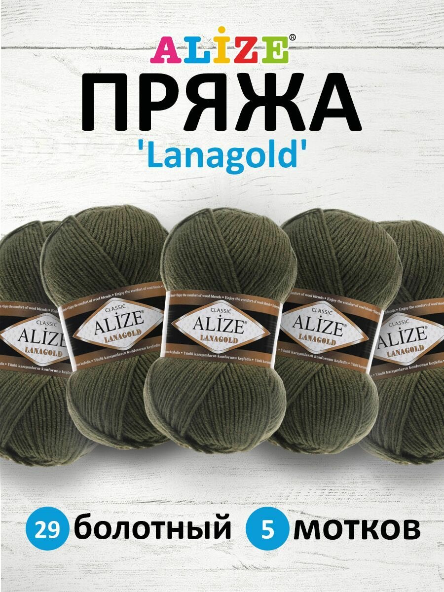 Купить Пряжа Alize Lanagold хаки (29), 51%акрил/49%шерсть, 240м, 100г, 5шт