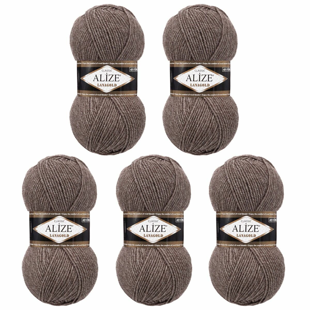 Пряжа для вязания Alize Ализе (LanaGold) Лана Голд, коричневая 5 шт. цвет 36