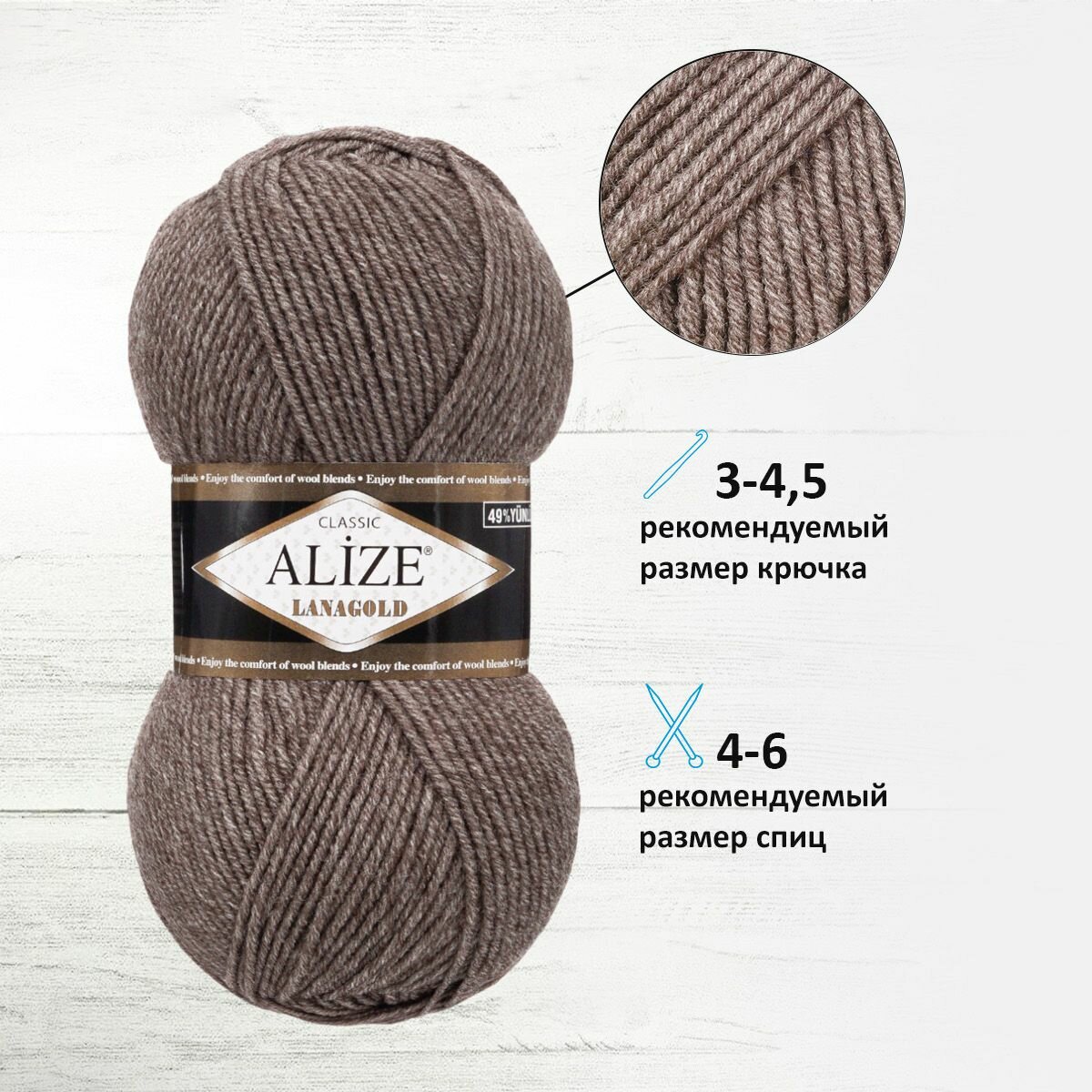 Пряжа Alize Lanagold (Ланаголд) - 1 шт Цвет: 207 св.коричневый меланж 49% шерсть, 51% акрил 100г 240м