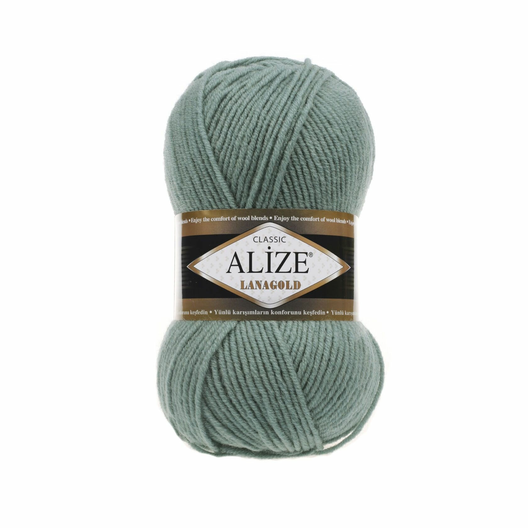 Пряжа Alize Lanagold (Ланаголд) цвет античный зеленый 507, 49% шерсть, 51% акрил 100г 240м 5шт