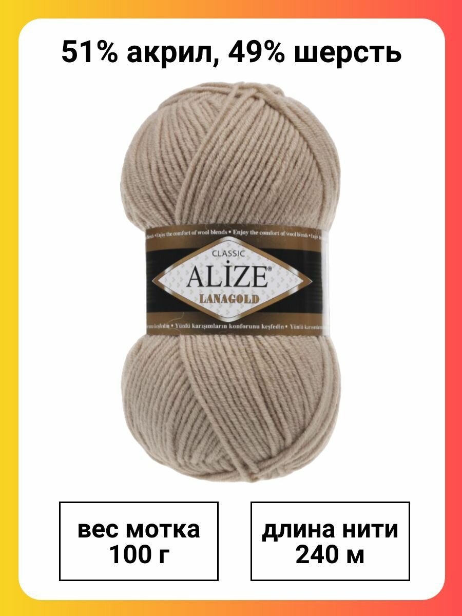 СохранитьПряжа для вязания ALIZE 'Lanagold' 100г, 240м (49% шерсть, 51% акрил) (05 бежевый), 5 мотков интересное: