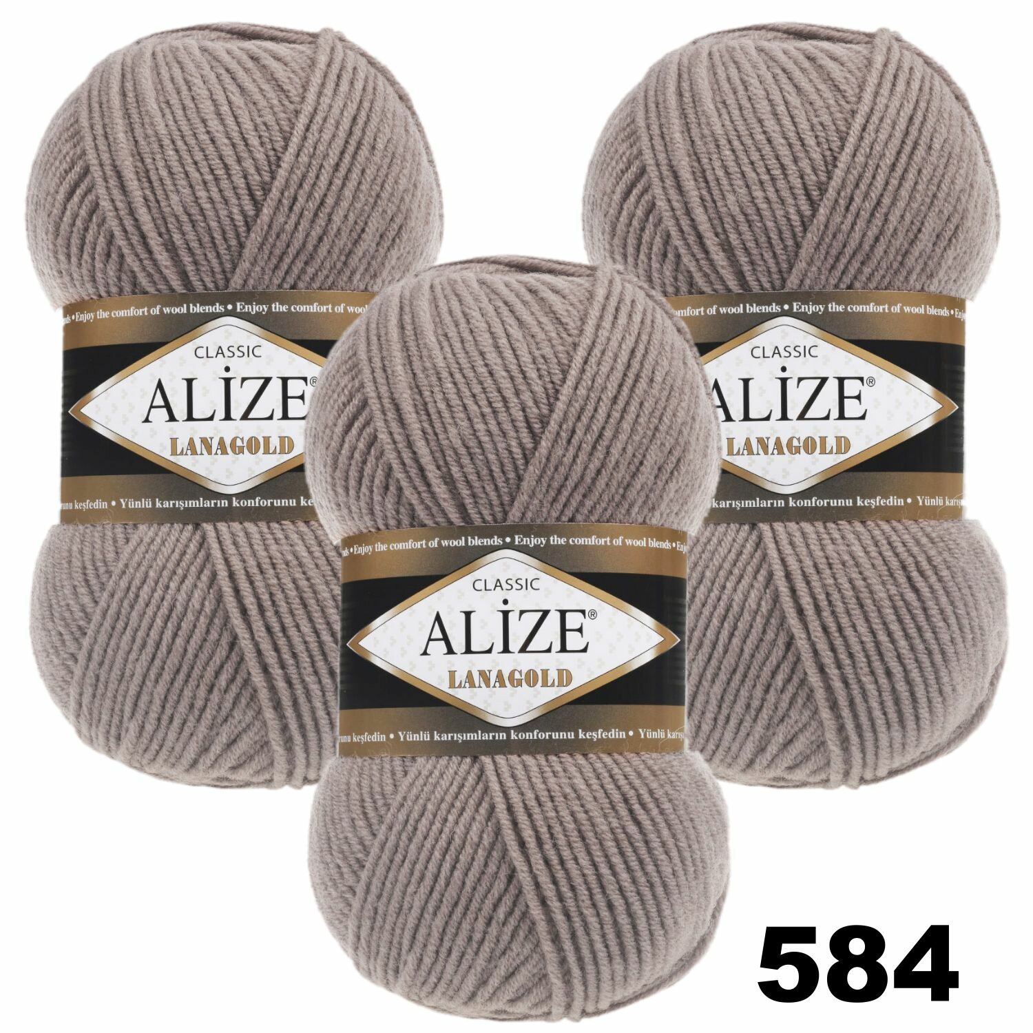 Купить Пряжа Alize Lanagold норка (584), 51%акрил/49%шерсть, 240м, 100г, 3шт