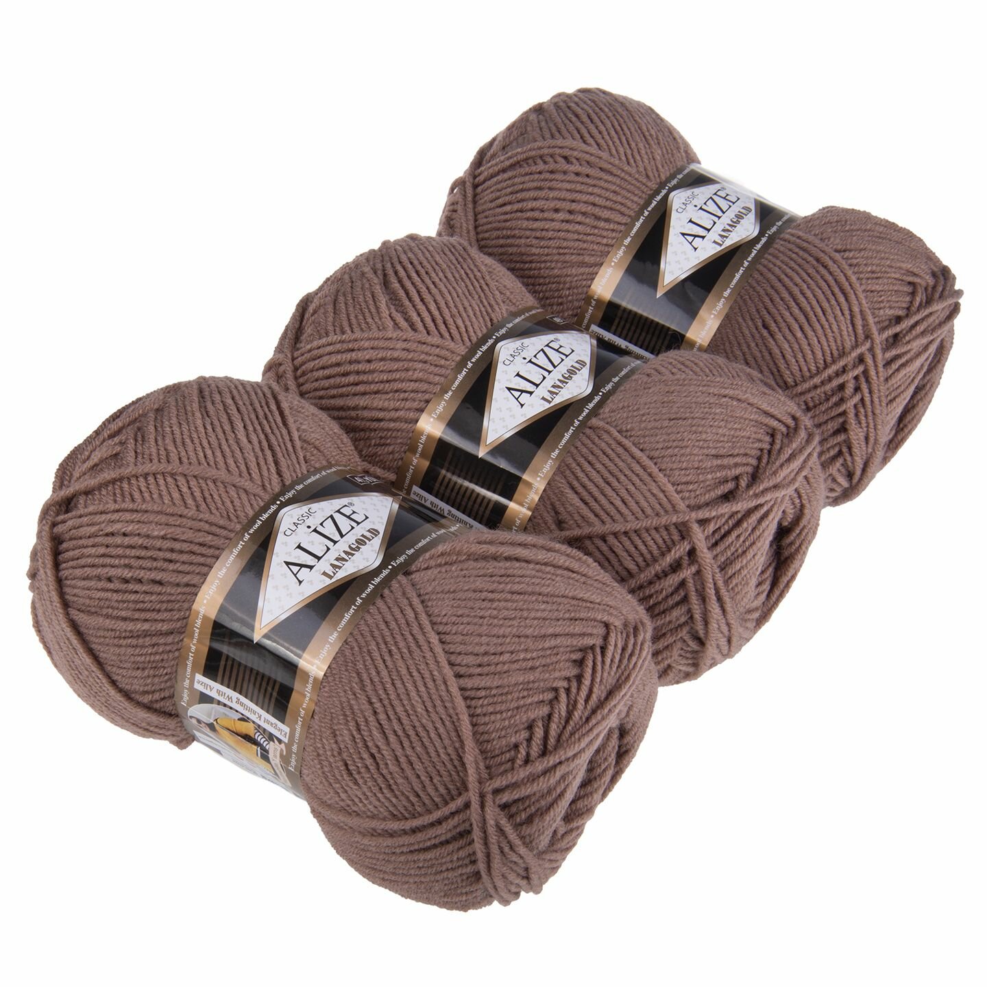 Пряжа для вязания Alize Ализе (LanaGold) Лана Голд, коричневая 5 шт. цвет 36