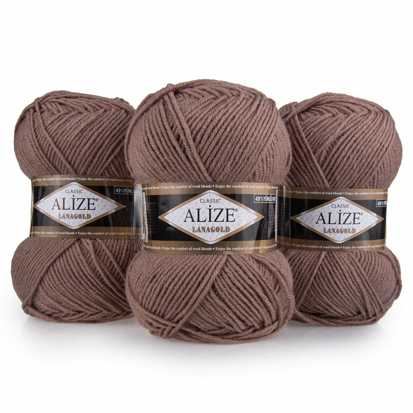 Пряжа ALIZE "Lanagold", 51% акрил, 49% шерсть, 240 мх100 г, 26 коричневая
