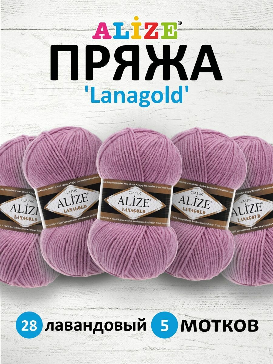 Пряжа для вязания ALIZE 'Lanagold', 100г, 240м (49% шерсть, 51% акрил) (28 лавандовый), 5 мотков