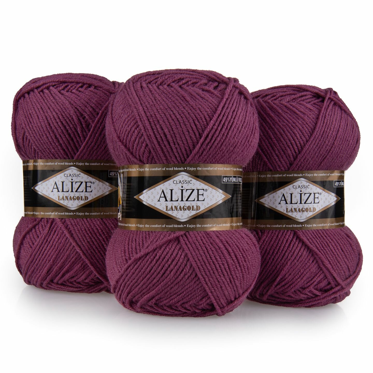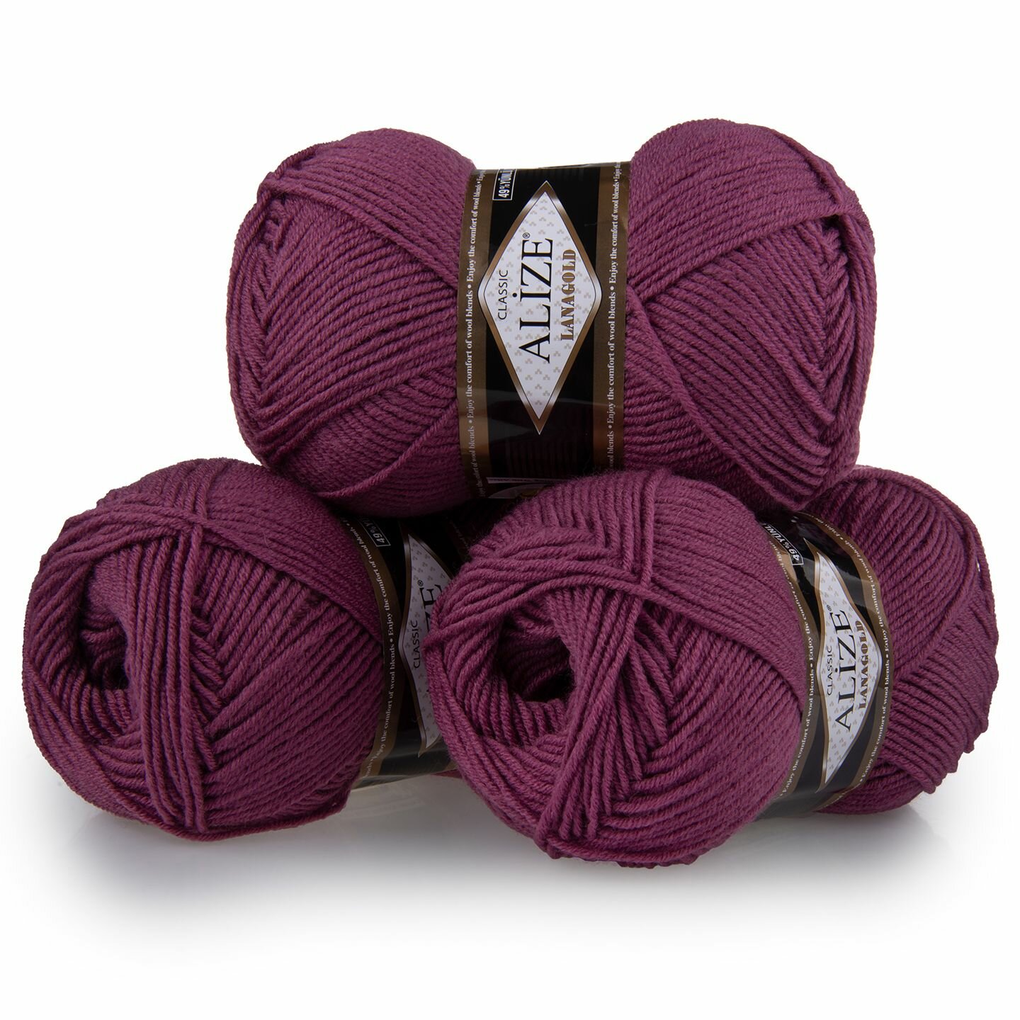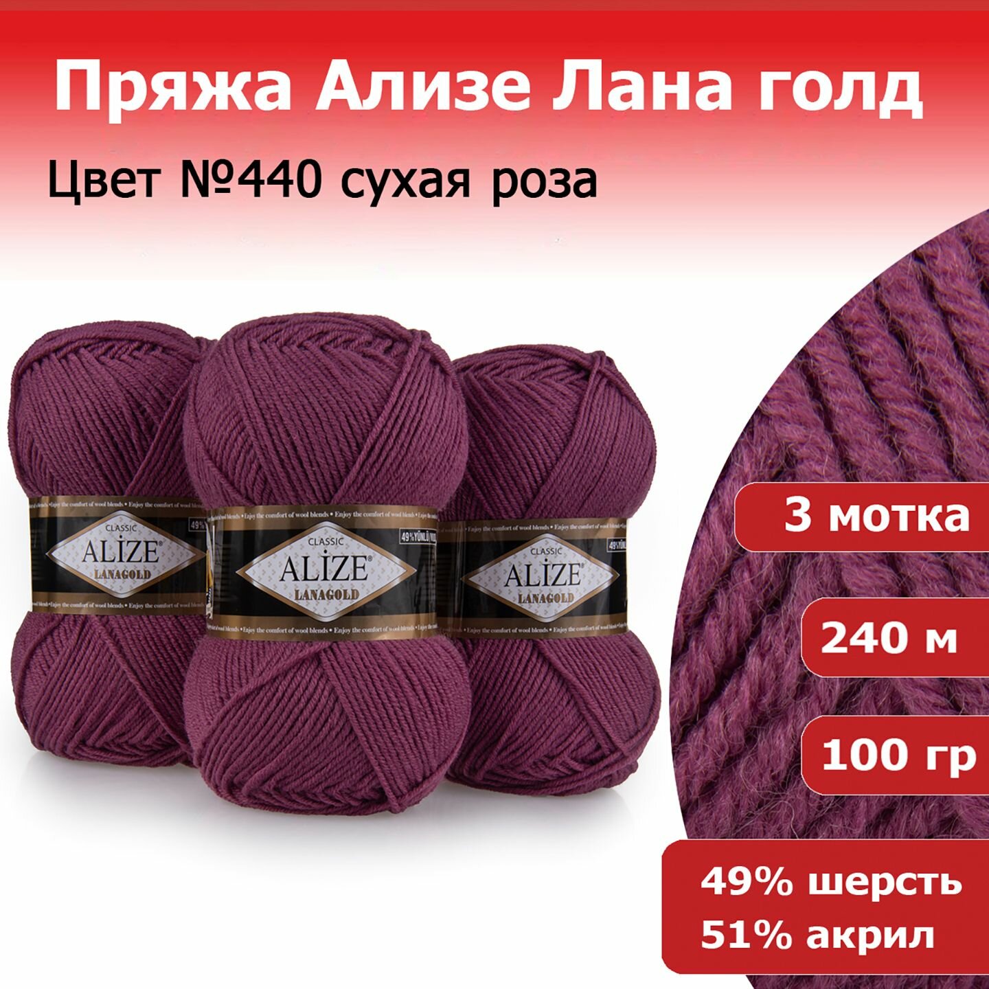 Купить Пряжа Alize Lanagold темная сухая роза (440), 51%акрил/49%шерсть, 240м, 100г, 3шт